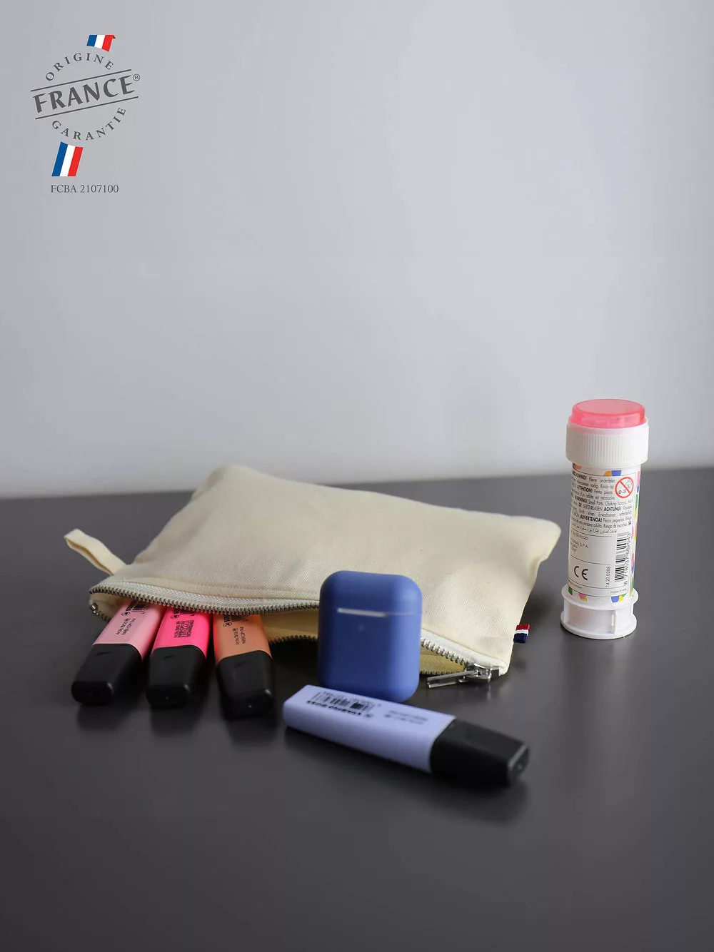Cette trousse 100 % coton issu de l’agriculture biologique (cretonne 150 g) allie polyvalence et élégance. Avec son design épuré et son format fonctionnel, elle vous accompagne aussi bien au bureau qu’à l’école ou dans vos loisirs créatifs. Certifiée Origine France Garantie, elle affiche fièrement un détail tricolore qui le rappelle.